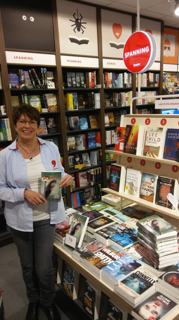 Vorige afbeelding Volgende afbeelding 20180216_135941 BRUNA MET YVONNE Bruna verkoopster Yvonne (bezig met de nieuwe stapel ter aanvulling).