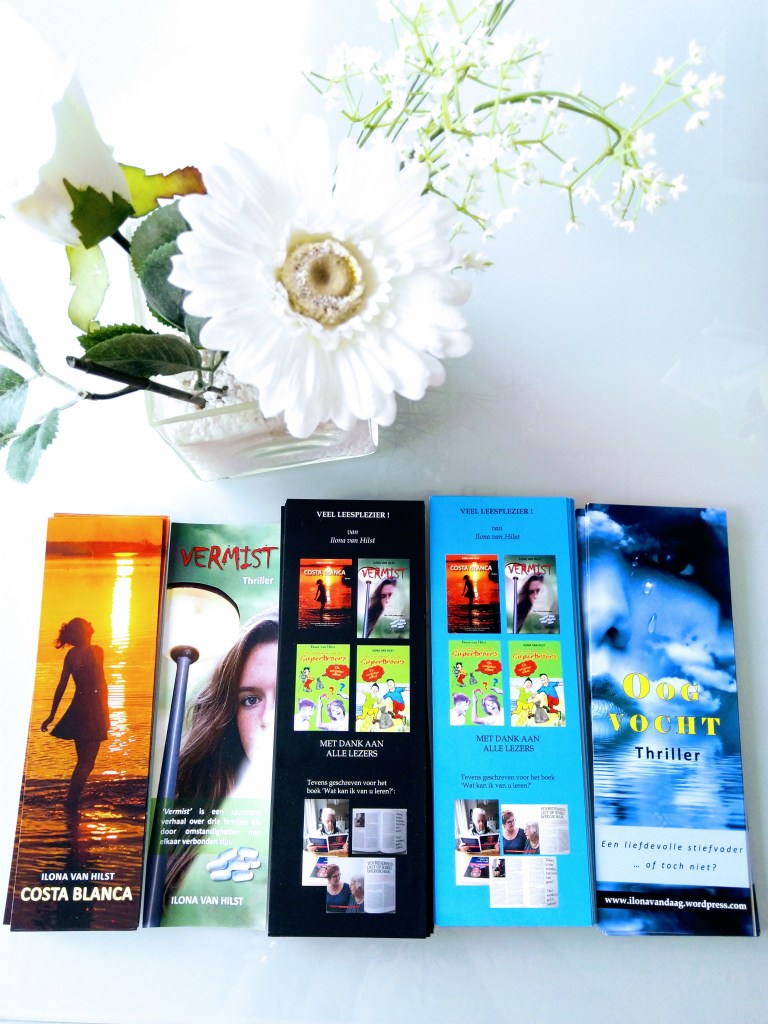 Deze boekenleggers heb ik gemaakt voor liefhebbers van mijn (eigen beheer) boeken. Ze kosten €0,50 per stuk, excl. verzendkosten.